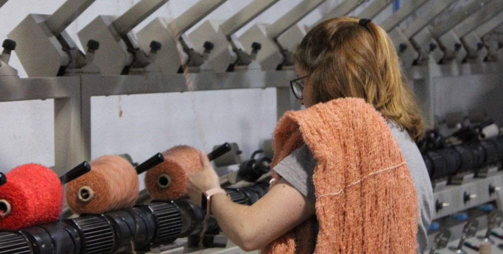 Dyed yarn is wound to uniform cones and mounted on the creel to feed the looms smoothly.