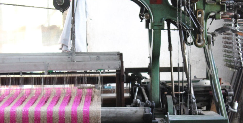 Multiple ends feed the loom while density and selvedges are monitored—consistent fabric, less waste, more efficiency.